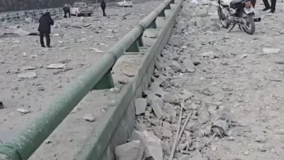 People walk amidst the rubble from the damaged Isfahan Optics Industries building and the surrounding area in Isfahan, Iran, in this screengrab obtained from a social media video released on March 24, 2026. SOCIAL MEDIA/via REUTERS THIS IMAGE HAS BEEN SUPPLIED BY A THIRD PARTY. MANDATORY CREDIT. NO RESALES. NO ARCHIVES. NEWS USE ONLY. Verification lines: Reuters was able to verify the location as Isfahan by the buildings, overpass, signs, road guardrails, walls and road layout seen in the videos which matched file and satellite imagery of the area. Coordinates of the damaged Isfahan Optics Industries building: 32.70324339647984, 51.67593590009293. The date when the videos were filmed was not verified, but no older version of the video was found posted online before March 24. The Iranian Red Crescent said the area was attacked on March 24. / Foto: Social Media