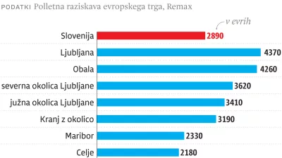 »Kljub temu da je število prodaj stanovanjskih nepremičnin v prvem letošnjem polletju nekoliko nižje kot v enakem obdobju lani, je pričakovati, da bodo cene nepremičnin v Sloveniji ostale stabilne. Za zdaj zaznavamo tudi rahlo rast hipotekarnih posojil, kar na dolgi rok pripelje do živahnejšega trga,« pravi Tanja Tučić iz nepremičninske družbe Remax, kjer so pripravili primerjave nepremičninskih trgov v Evropski uniji. Lastniki nepremičnin so lahko zadovoljni. Po zbranih podatkih so se v Sloveniji prodajne cene nepremičnin v letošnjem polletju povečale za pet odstotkov v primerjavi z enakim lanskim obdobjem. Povprečna prodajna cena stanovanjske hiše na ravni države je bila 160.000 evrov, povprečna cena stanovanja pa 2890 evrov na kvadratni meter (računana je mediana oziroma srednja vrednost). V Ljubljani je povprečna prodajna cena stanovanjske hiše 416.000 evrov, cena stanovanja pa 4370 evrov na kvadratni meter. V slovenski Istri je povprečna dosežena prodajna cena za stanovanjsko hišo znašala 325.000 evrov, cena kvadratnega metra stanovanja pa 4260 evrov. V Mariboru je povprečna cena za kvadratni meter stanovanja 2330 evrov, prodajna cena stanovanjske hiše pa 184.000 evrov.