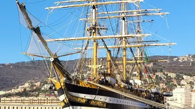 Trije jambori, črno-bele proge na trupu, tikov les in medenina dajejo 100-metrski jadrnici Amerigo Vespucci prepoznaven videz. Na njej je vse potrebno za šolanje mornarjev: plezanje po vrveh na 54 metrov visoke jambore, impregniranje lesene palube, poliranje medeninaste opreme …