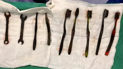 EXCLUSIVE: Story from Jam Press (Toothbrushes In Stomach)Pictured: A video grab of the doctors removing the seven toothbrushes and two spanners from inside the 26-year-old man's stomach.VIDEO: Tummy ache-suffering man leaves docs stunned as they find seven toothbrushes and two spanners in his stomachA tummy-ache-suffering man left doctors stunned after they found seven toothbrushes and two spanners in his stomach.They had been there for weeks.The 26-year-old was admitted to the hospital after complaining of chronic abdominal pain.Doctors were stunned to find multiple foreign objects inside his stomach.An endoscopy was attempted but failed to remove the objects.A senior gastroenterologist and his team then decided to proceed with open surgery.The operation lasted more than two hours in Jaipur, Rajasthan, India, as reported by What's The Jam.According to the doctors, the man's stomach was like a dustbin, and the objects could have been life-threatening.The patient from Bhilwara district was said to have a habit of swallowing iron tools and toothbrushes.He had swallowed these objects a month ago.But after the operation, his condition was described as stable.ENDSEDITOR'S NOTE: Video Usage Licence: (PROFESSIONAL PARTNER) We have obtained this material from a professional partner for use by our news media clients (company press release / other media agency).Video Restrictions: None.30 Dec 2025Pictured: Story from Jam Press (Toothbrushes In Stomach)Pictured: The seven toothbrushes and two spanners found inside the 26-year-old man's stomach.VIDEO: Tummy ache-suffering man leaves docs stunned as they find seven toothbrushes and two spanners in his stomachA tummy-ache-suffering man left doctors stunned after they found seven toothbrushes and two spanners in his stomach.They had been there for weeks.The 26-year-old was admitted to the hospital after complaining of chronic abdominal pain.Doctors were stunned to find multiple foreign objects inside his stomach.An endoscopy was attempted but failed to remove the objects.A senior gastroenterologist and his team then decided to proceed with open surgery.The operation lasted more than two hours in Jaipur, Rajasthan, India, as reported by What's The Jam.According to the doctors, the man's stomach was like a dustbin, and the objects could have been life-threatening.The patient from Bhilwara district was said to have a habit.,Image: 1062304656, License: Rights-managed, Restrictions: NO Australia, Germany, Norway, South Korea, Sweden, United Kingdom, United States, Unknown Country, Model Release: no