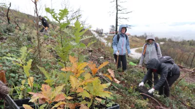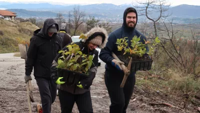 Petkovo jutro je marsikje postreglo s snegom, nad Krasom sta veter in dež silila v toplo in suho zavetje. Le nekaj več kot 350 prostovoljcev, ki so se ta dan namenili pokloniti naravi in ji pomagati pri njeni obnovi, se ni dalo. V blatu in mrazu so se s sadikami dreves podali po Fajtem hribu nad Renčami. Tam je poleti 2022 divjal velik požar in za seboj na slovenski strani pustil 3705 hektarjev veliko pogorišče. »Ozrite se po hribu, vse golo, nikjer nobenih dreves, še vedno se vidi, kako velike površine so pogorele,« je med iskanjem najboljšega mesta za sadiko hrasta dijak Nik Savšek z roko pokazal naokrog. Pred oči si je poskušal priklicati prizore gašenja, ki jih je pred dvema letoma spremljal po televiziji. Tretji vseslovenski veliki akciji pogozdovanja se je pridružil skupaj s sošolci srednje gradbene šole v Ljubljani. Drugi prostovoljci so prišli iz različnih podjetij in ustanov. Z zaboji sadik in opornimi količki so se pogumno podali v blatno strmino in med kraškim kamenjem iskali zaplate zemlje za nova drevesa.
