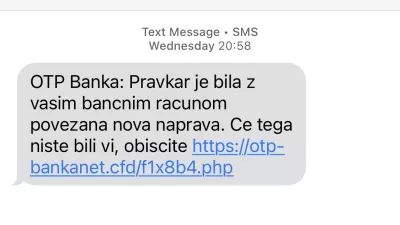 Gre za odličen primer, kako lahko prevaranti izkoristijo našo zmedo in naglico. Kdo ve, morda je katero od številnih sporočil SMS, ki se avtomatsko pošiljajo na tako ali drugače pridobljene telefonske številke ali pa kar na slepo, doseglo osebo, ki ima bančni račun odprt pri OTP banki in je celo kliknila na povezavo, ker je verjela, da se z bančnim računom res dogaja »nekaj čudnega«.