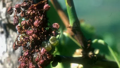 Ameriški škržatek, ki ga sicer pri nas poznamo že četrt stoletja, je še vedno karantenski, saj je prenašalec zlate trsne rumenice, neozdravljive bolezni vinske trte. Škržatek s sesanjem rastlinskih sokov na okuženi trti prenese bolezen na zdrave rastline. Pridelka v okuženih vinogradih je manj in je slabše kakovosti, trte lahko v nekaj letih propadejo. Listi začnejo rumeneti in rdečeti ter se zvijati, grozdi pa venijo in se sušijo. Zlato trsno rumenico so v Sloveniji prvič ugotovili v okolici Kopra leta 2005. Trenutno so pri nas vzpostavljena razmejena območja na severovzhodu, jugovzhodu in zahodu države. Za zatiranje zlate trsne rumenice izvajajo zdravstvene preglede rastlin, odstranjujejo in uničujejo okužene trte, ameriškega škržatka pa zatirajo s fitofarmacevtskimi sredstvi. Z ameriškim škržatkom se bojujejo po skoraj vsej vinorodni Evropi in Balkanu.