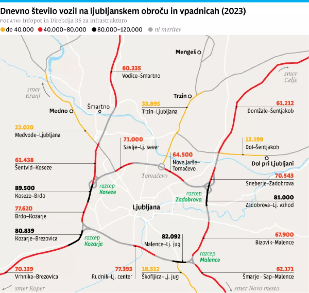 Krepko čez 80.000 vozil, od tega več kot 8600 težkih tovornjakov, na dan v povprečju zabeležijo števci prometa na ljubljanskem obroču. »Slovenija je tranzitna država, a zastoje okoli Ljubljane velikokrat ustvarjajo tudi prebivalci iz zalednih občin,« opozarja Gregor Steklačič z direktorata za prometno politiko na ministrstvu za okolje, podnebje in energijo. »Ljubljana se mora navezati na prve zaledne občine in središča, da območje poleg kakovostnega javnega potniškega prometa dobi tudi dobre in varne kolesarske povezave. Iz 20 kilometrov oddaljenih krajev bi se lahko prebivalci v Ljubljano vozili tudi z električnimi kolesi in ne samo z avtomobili,« razmišlja Steklačič, nacionalni koordinator za kolesarstvo.