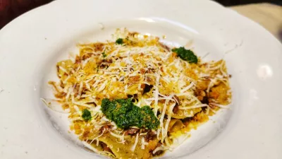 Bleki s svinjskim ragujem in dimljeno rikoto, Trattoria Alla Luna