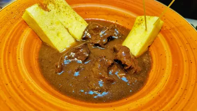 Glavne jedi so obilnejše in krepkejše kot predhodne, ljubljanski zrezek je svinjski, imajo celo čevapčiče, ampak s polento. Ker smo iz Slovenije, so jih odsvetovali. Pri vas imate veliko boljše, je bila prepričana natakarica. Goriški golaž (15 evrov) morate poskusiti, se ji je zdelo. In smo ga. Kot rečeno, na koncu je to lahko nasitna jed, ne razlikuje se veliko od tistega, ki ga lahko poskusite pri nas, je pa jasno, da kosi polente v obliki priloge okuse odpeljejo v drugi smeri kot recimo krompir ali kruh.