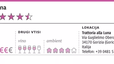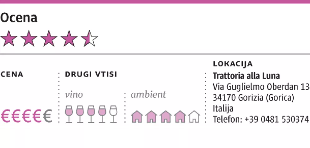 Predvsem pa ne gre pozabiti na Alla Luno, prvo goriško mestno gostilno, ki celo bolj diši po slovenskih kot italijanskih jedeh. Konec koncev je pri Luni mogoče tako rezervirati kot naročiti v slovenščini, kar seveda našim gostom olajša kosilo ali večerjo.