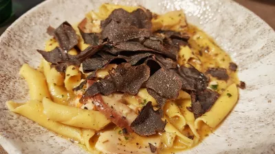 Testenine pri Godini računajo 15 evrov na krožnik. Ob steklenici bogatega Batičevega belega Angela smo naprej pokusili fuže s škampi, jurčki in črnimi tartufi. Popolno skuhane testenine, obilje škampov, jurčkov in tartufov, natančno odmerjene začimbe, boljše »surf & turf« kombinacije že dolgo nismo pokusili. In če pri fužih hvalimo tudi obilje škampov in tartufov, moramo pri raviolih, ki jih polnijo z gamberi, pohvaliti omako s pokrovačami in prekajeno rikoto. Na ta krožnik bomo zagotovo še prišli.