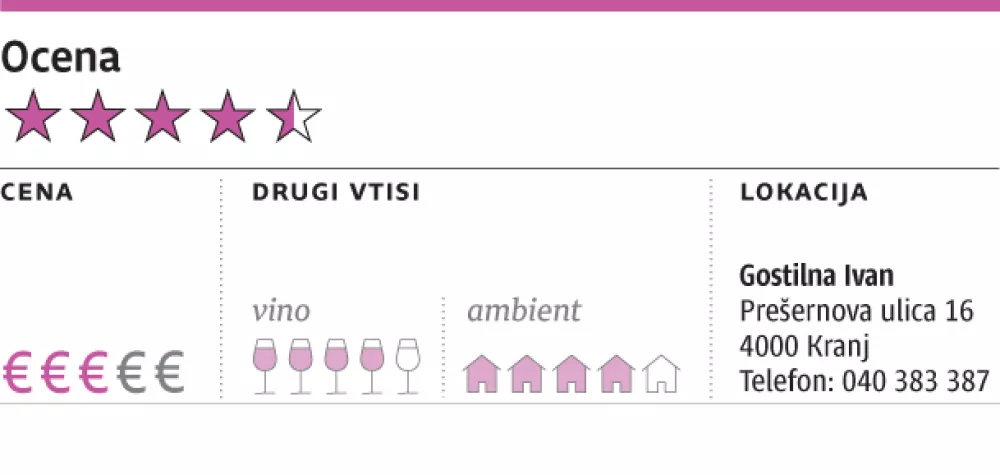 V začetku leta pa je v središču Kranja gostilno odprl nekdanji šef kuhinje enega od mnogih bitcoin hotelov v Bohinju. Zakaj je ušel iz kraja, kjer se menda cedita med in mleko, ne bomo ugibali, je pa zelo gotovo, da v Kranju z ekipo počasi gradi gostilno, ki bi lahko zrasla v eno najboljših na Gorenjskem. S ponudbo nas je prepričal že, ko smo menije pred obiskom preverjali na spletu, še bolj so nas presenetile več kot ugodne cene hrane in vina. Degustacijski meni petih, kot se je izkazalo kasneje, nemajhnih jedi, stane 36 evrov, toliko kot v Ljubljani ali na Bledu malo boljši biftek.