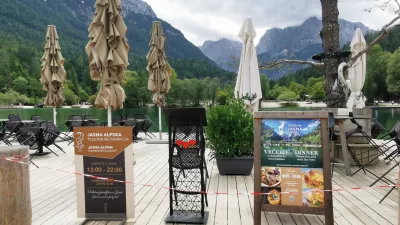 Tam, kjer se turističnim delavcem zdi pomembno, so drevesa grozeče ovita z belo-rdečimi plastičnimi trakovi, kot da gre za prizorišča kriminalnih dejanj, a najvišjo raven slovenskega turizma doseže drago, po dežju blatno parkirišče, na katerem so prostori za avte označeni z umazanimi trakovi. Po obisku enega najlepših slovenskih jezer za blatno podvozje vašega jeklenega konjička ni druge rešitve kot temeljito čiščenje.