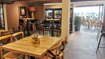 V gostilni niti približno ne gre za tovrstno petzvezdično odiranje. Pravzaprav se zdi, da gostov niti ne izbirajo, prodajajo vse od pomfrija do zrezkov, od šampanjca do piva, kokte ali koktajlov. Vsi so dobrodošli, čeprav ponujajo jedi s pompoznim sloganom »jedi treh dežel« (Slovenija, Avstrija, Italija). Morda se spomnite, da so podoben koncept pred leti neuspešno gojili v bližnjem hotelu Skipass. In obupali.