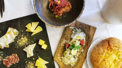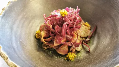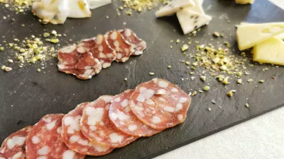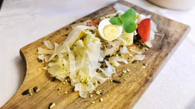 Toplemu hlebčku je gotovo najbolje ob siru s čilijem, ki ga podpisuje sosed Gorišek, imajo tudi vipavske sire Golden Ring, na mizi so še ovčji in kozji sir, pa tudi takšnega s tartufi imajo v kombinaciji, v kateri blestijo tudi Bizjakova suha salama, BioSingova medvedova salama in lardo krškopoljca (devet evrov). Zamuditi ne gre niti krepke hišne paštete, ki jo postrežejo z zeliščnim maslom, naribanim staranim sirom, prepeličjim jajcem in redkvicami (sedem evrov), še bolj je med hladnimi predjedmi navdušil zmagovalni prekajeni goveji jezik z rdečim zeljem in gorčičnimi semeni. Enostavna, a izvrstna kombinacija jedi je bila zajetna, njena cena pa 14 evrov.