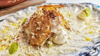Kot smo omenili, imajo pri Javorniku tudi nekaj prestižnih mesnin in veliko možnosti iz Jadrana, a naša majhna ekipa se je tokrat posvetila dolenjski kuhinji oziroma Javornikovemu pogledu na lokalno kuhinjo. Iz krušne peči je prišla polovična, pa še vedno ne majhna porcija gratiniranih raviolov. Če so v časih pred prenovo s krušno pečjo delali zelo približno, so bili ravioli tokrat zelo natančno pečeni in, morda tudi to, manj nasitni kot jedi iz krušne peči nekoč. Na drugi strani je bila še ena predjed, dimljena šentrupertska postrv s kar preveliko množico spremljevalcev od svežih kumar do zelene v različnih pojavnih oblikah in prahu iz mandarin ter tudi prahu iz oliv.