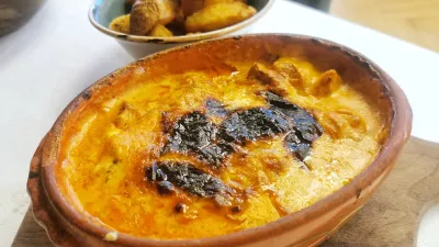 Če je bil jelen avtorsko dodelana klasika, se je na drug način izkazal piščanec. Ta je v krušni peči gratiniran v močni omaki s papriko in na mizo prispe vroč, zelo vroč. In če se ob jedeh s piščancem običajno dolgočasimo, lahko to jed enostavno priporočamo, tudi zato, ker skupaj s prilogami stane sprejemljivih 13 evrov.