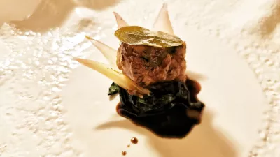 Potem so na vrsti testenine, in to kakšne! Prve so bile hladne, tanki špageti oziroma angelski laski znamke Benedetto Cavalieri so bili obogateni s sezamom, pečeno papriko, chorizom, surovimi škampi in kokosovo smetano. Sijajna jed. Nič niso zaostajali tortelli, polnjeni s friko, ki jim dodajo zimske okuse repe, rdeče pese in belega tartufa. Tako pri laskih kot pri tortellih gre za jedi, ki bi lahko uspešno nastopale tudi samostojno, zunaj menija, res so bile pripravljene tako, kot znajo testenine pripraviti samo naši sosedje, a so v opciji »à la carte« zelo drage, vsaka po 45 evrov.