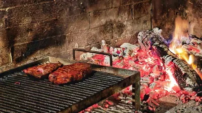 Mi ne sodimo med takšne. Po malvaziji smo si natočili tudi domač refošk (1,5 evra) in ugotovili, da je manj kisel in bolj piten od bližnje konkurence. Pri mesu iz kamina so bili v igri trije različni kosi govedine, rostbif, florentinec in picanha angusa, ki so jo tudi najbolj priporočali. Vmes nam je bilo malo žal, da smo za nekaj jedi, ki so bile v ponudbi zunaj jedilnega lista, izvedeli prepozno. Bilo je nekaj izpeljank z divjimi šparglji, predvsem pa istrski golaž, ki ga skuhajo z rebrci, klobaso in kožicami. Sliši se res dobro. Našo picanho so lepo rožnato narezali in postregli na rukoli, žal je bilo nekaj kosov kar preveč trdih, pa tudi cenovno daleč najmanj prijazna jed popoldneva je bila to. Po drugi strani pa je treba reči, da je sodelovalo še nekaj dodatkov, odličen pečen krompir, neobvladljivo velika skleda kuhanega kislega zelja s slanino in skleda radiča z vrta.