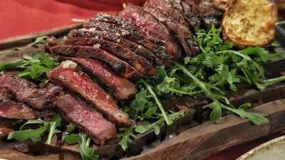 Ponudba hrane ni obsežna, naštejejo manj kot pol ducata različic testenin, s kokoško, boškarinom, tartufi in spomladi s šparglji, pa dva, morda tri različne kose govedine, ki jih pečejo na odprtem ognju, in na začetku ob siru tudi nekaj pršuta in salam.