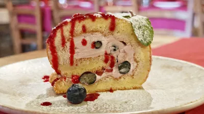 V sladki fazi imajo tradicionalno jabolčni zavitek in rikoto s kostanjevim medom, tokrat so na priročno tablo pripisali tudi limonin poljubček, čokoladni mousse z jagodami in kompaktno, raje bi bolj rahlo, rulado z gozdnimi sadeži.