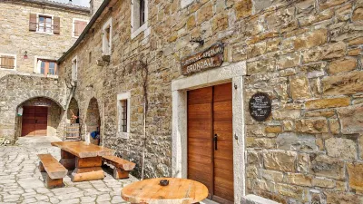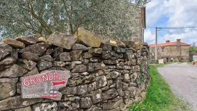 Abitanti bodo potrebovali še veliko pridnih rok, če se bodo hoteli vrniti v življenje, se pa vidi, da se v vasi že dogajajo nova gradbena dela, konoba Grondali pa je presenetljivo lično urejena. Kot da vas ne bi bila še nedavno povsem zapuščena, pa čeprav njeno ime pomeni – prebivalci. Zunaj pred lokalom je veliko dvorišče, ki v hladnih pomladnih dneh še ni bilo pripravljeno za zmrzljive goste, v notranjosti sta nas pozdravila kamin, ki ga uporabljajo tudi za peko mesa, in velika »berkelca«, salamoreznica, ki poskrbi za hladne mesnine.