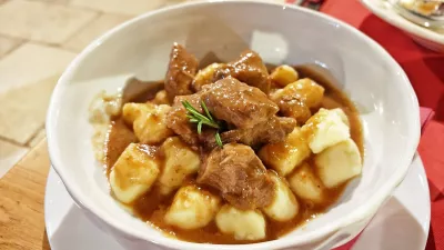 Radio je šel z Gibonnija na Zečića, mi pa s špargljev na njoke z boškarinom (17 evrov). Toda v primerjavi z glasbo so bili njoki, ki jih postrežejo v veliki skledi, odlični. Veliki in puhasti lahko nahranijo tri lačne osebe, pa tudi omaka ne predvideva zgolj nekakšnega mletega mesa, ampak zajetne kose mehke govedine.