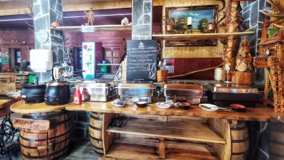 Po eni strani je način strežbe glavnih jedi iz kotlov v glavni jedilnici zapleten in zahteva celega, celo malce športnega človeka, po drugi strani pa v Jelenovem hramu lahko pokusite vse jedi, če ste pravi človek za takšne posege, saj so porcije neomejene.
