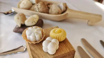 Če se vrnemo k uvodu. Osvežilna peneča kapljica je pospremila serijo malih pozdravčkov, namazov, ki so jih spremljale tople in dišeče na četrtine razrezane žemljice. Na mizo smo dobili kepico masla z limono in pehtranom, ki je zdržalo do konca podaljšanega kosila, dobili smo tudi okusno kokošjo pašteto, pa še namaz iz lešnikov, namaz iz buče in juzuja ter metin namaz. Lepe in spretno postrežene ideje v spomin na čas, ko so v naših krajih šele začeli ponujati prve avtorske ideje, ki so potem marsikje kot duh ušle iz svetilke ter podivjale. In se predvsem zelo podražile.
