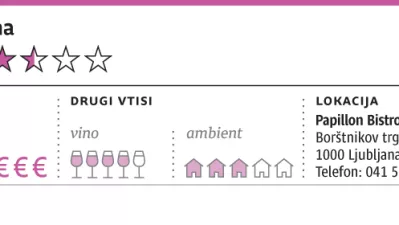 A očitno je tako, ko je valentinovo, še eden od uvoženih praznikov, ki pomaga prazniti police v trgovinah in napolniti drage gostilne. Tudi pri Papillonu, kjer so ljubezen napovedovali z duhamornimi in patetičnimi Lionelom Ritchiejem, Simply Red in Dionne Warwick. A večerja (75 evrov brez pijače), če dogodek sploh lahko tako imenujemo, je presegla celo za Ljubljano nizke standarde. Še dobro, da imajo pri Papillonu dobro vinsko karto, ki vsebuje najboljša slovenska in nekaj zelo dobrih tujih vin, pa tudi na kozarec je mogoče dobiti marsikaj in priznamo, da smo tokrat svojo žalost uspešno utapljali.