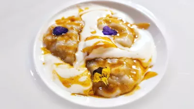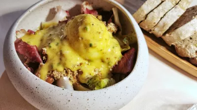 Nič manj posebni niso bili ravioli s krompirjem in dimljeno rikoto, postreženi v timijanovi juhi in z mleto svinjino. V hiši pa je bila ob našem obisku tudi goriška vrtnica. Radič, ki ga je mogoče pripraviti na nešteto načinov, so na mizo prinesli v zelo preprosti različici s fižolom, kuhanim jajcem in drobtinami s svinjsko mastjo, za spektakel pa je poskrbel šef kuhinje, ki nam je pri mizi namešal majonezo in z njo prelil jed.