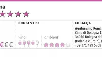Kar nekaj časa so nas poznavalci briške kulinarike in vin opozarjali na turistično kmetijo Ronchi Rò v Dolenjem, tik ob slovensko-italijanski meji. Ronchi Rò je nepretenciozna in prijazna hiša med vinogradi, kjer pridelujejo svoje vino, ponujajo velike, čiste in zelo natančno urejene sobe, ves dan nekaj strežejo, kadar je lepo vreme, tudi na dvorišču. Imajo prijaznega, malce slinastega psa ter vseprisotnega gospodarja in kuharja v eni osebi, ki vneto vozi slalom med mizami in kuhinjo. Na posestvu strogo poudarjajo naravne, ekološke ali trajnostne zapovedi, a to ne vpliva na počutje, kot se v takšnih primerih rado zgodi pri nas.