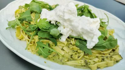 Na našo nedeljo je bil lokal med starim in novim mestom tako napolnjen, da je ljudstvo čakalo v vrsti. Večina je pila in jedla, kar je povzročilo kolaps, ki se je odražal v množici čakajočih na mizo in, še huje, v tem, da je že tako pičlo število jedi na jedilnem listu začelo zmanjkovati. Hkrati je šlo vse skupaj tako počasi, da smo na naslednje jedi, torej predjedi, čakali več kot eno uro. Kar ni malo. Po kaki uri smo torej dobili solidne rezance s pestom bazilike in stracciatello (13 evrov). Pašto pri Super osmici znajo skuhati. Nekaj manj smo se strinjali s preslanim humusom, v katerega so vmešali rdečo peso in zaatar. Pri obeh jedeh so, kot praktično v vseh primerih, dodali rukolo, ki je kot ene redkih sestavin tisti dan očitno ni zmanjkalo.