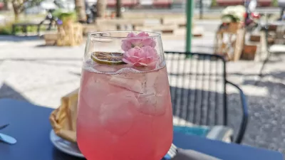 Hrana pri Super osmici želi biti bistrojska, podložijo jo z modernejšimi slovenskimi popevkami, za nas so prepevali Jan, Tabu, Kingston, Čuki, Vlado Kreslin … italijanske popevke so, kdo ve zakaj, izostale, publika pa je vseeno, vsaj na našo sončno nedeljo, bila tudi italijanska. Ob prvih jedeh so nam ponudili hišni koktajl summer rose, aperitiv, v katerem so vodka, prosecco, sirup vrtnice in soda. Sladek, še kar alkoholni napitek, seveda poudarja simbol Nove Gorice, dehtečo vrtnico (pet evrov), ko ga je zmanjkalo, pa smo zvrnili še nekaj močnejši koktajl mamma mia z vodko in limončelom.
