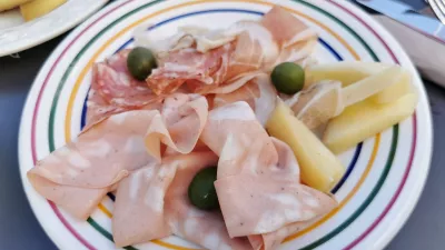 Za začetek jedilni list našteje prigrizke, ki so lahko hladne predjedi ali pa gredo h koktajlom oziroma vinu in stanejo od tri do devet evrov. Imajo bakalar, tatarski biftek, humus in simpatične ocvrtke, polnjene z namazom iz soške postrvi. Tatarski biftek je zelo začinjen, ne pikanten, ampak kremast, pomešan s hišno dimljeno majonezo, posut s sušenimi paradižniki in nastrganim sirom ter odločno preveč rukole. Narezek, nekaj več ga je bilo, sestavijo s sirom, mortadelo, pršutom in salamo. Olive, ki jih priložijo, so drugorazredne, pretrde in nemesnate.