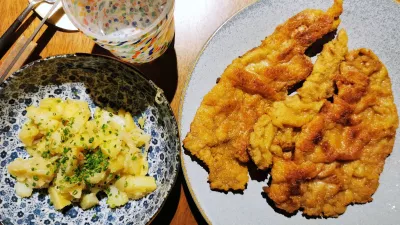 Glavne jedi v Theatriumu so obilne. Še posebej, ko dodajo priloge. Njihov dunajski zrezek je, jasno, iz teletine. Za razliko od mnogih naših, ki kot meso raje ponudijo cenejšega piščanca ali svinjino, je zelo mehak, hrustljavo ocvrt in po maslu dišeč. Zraven gre ne prekisla krompirjeva solata in, to je treba reči, da se ne borijo z orjaškimi dimenzijami in ne gleda čez rob krožnika, dunajca raje ocvrejo v treh kosih (22 evrov).