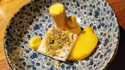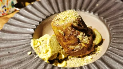 Sladice so bile morda najšibkejši del večera. Pistacijev sufle je bil bolj ponesrečena lava tortica, sladek jabolčni zavitek s karamelo in marcipanom ni bil slab, tiramisu z viskijem in čokolado je bil nekam kisel, sladica z mandarino v različnih oblikah pa brez kakršnega koli izrazitega okusa.