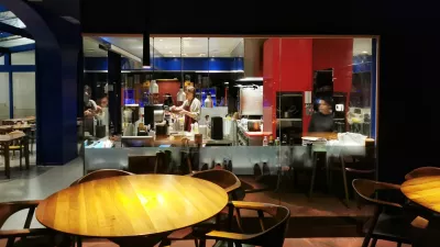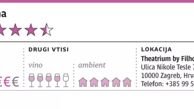 Če bi v naših krajih ali v regiji iskali bistro, kot je popularno reči, bi lahko ugotovili, da je zagrebški Theatrium temu opisu zelo blizu. Predvsem zaradi neformalne notranjosti, kjer kuhinjo od jedilnice ločuje steklena stena, pa tudi zaradi spretnih natakarjev. Ti so brez večjih težav v izrednem ritmu obvladovali lokal, ki je prejšnji petek pokal po šivih. V Theatriumu, po tem so morda bolj kot bistrojem blizu ljubljanski restavraciji Cubo, strežejo prepoznavne jedi, ki redko, pa še takrat zelo malo, odstopajo od originalnih receptov. Tudi nobene posebne filozofije ne poudarjajo, jedi so nekaj cenejše kot v naših krajih, porcije pa veliko večje.