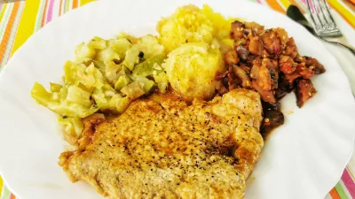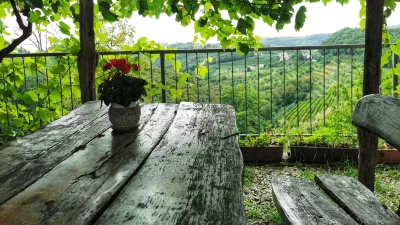Tretja jed ali prva glavna, če hočete, je bil svinjski zrezek v vinski omaki. Mora biti vino, drugače je brez veze, nas je hotel prepričati gospodar, kar malce ponosen na povezanost domače kapljice in mehkega kosa svinjine. Kuharica se ni povsem strinjala z natakarsko službo, saj je meso bogato povezala s kaponato (jajčevci, oljčno olje, paradižnikova omaka, zelena...), bučkami s slanino in običajnim praženim krompirjem. Simpatična, ne pretežka jed. Je pa pri njej seveda povsem razumljivo sodelovala hišna rdeča zvrst z merlotom v glavni vlogi. In če že moramo izbirati, rdeča zvrst je pustila boljši vtis kot bela, je pa res, da drugega vina niti niso imeli. Čeprav je gospod Božidar z najvišje točke v Brdih rad pokazal v dolino. Jutri se začne delo v vinogradih, tole tam dol, to je vse naše, dela ne bo malo. Menda je letina dobra, to si velja zapomniti za naslednja leta, ko bomo naročevali zlato in rdečo kapljico letnika 2025.