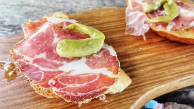 Pri Bizjakovih sta glavni jedi dve. Druga je bila ob našem obisku pohana piška, opremljena s paradižnikom in zeleno solato. Brez kompliciranja, a zelo okusno, žvižgajoča kuharica v najcenejšem briškem gostišču nedvomno zna s hrano. In tudi zato je bil piščanec mehak ter skorja hrustljava in ravno takšnega okusa, kot je prav, pa čeprav je cena jedi nekaj krat nižja, kot drugod na Primorskem ali v najdražjih mestih Evrope, kamor gre seveda šteti predvsem Bled, Ljubljano in Kranjsko goro. Po drugi strani pa je kosilo z razgledom v Gonjačah nekaj, kar naši vseprisotni turistični delavci še niso uspeli odtujiti narodu. Čeprav se zelo trudijo. Konec koncev je pri nas vse več hotelov, ki ponujajo sobe po 1000 evrov na noč. V Gonjačah je soba le 25 evrov na noč, in tudi to je za trenutno prevladujoče standarde izredno poceni.