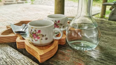 Morate poskusiti, pod kakšno brajdo sedite, je iz hiše prihitel gospodar Božidar z opranim grozdjem. Rdeče debele in sladke jagode niso za vino, jih imajo pa radi otroci in ko dozorijo, jih vedno nekaj prinesejo k mizi. Grozdja je v trenutku zmanjkalo, a je sledilo še nekaj drugih posladkov, recimo breskova pita, pa sadna solata z breskvijo in smetano, za konec pa tudi palačinka s hruškovo marmelado. Porcije sladic niso velike, a se po takšnem kosilu, z dvema glavnima jedema, vsekakor ne gre pritoževati. Še posebej potem, ko ponudijo žganje. Domače, ne premočno, so nas prepričevali, pa vendar se nam je zdelo, da tropinovec ni med najbolj šibkimi.
