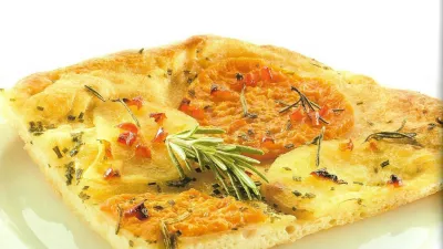 V posodo presejemo gladko moko, kvas pa nadrobimo v mlačno vodo in dobro premešamo. V presejano moko zlijemo kvas z vodo, dodamo žlico oljčnega olja in solimo ter na hitro umesimo testo in ga pustimo vzhajati dvajset minut. Medtem olupljen in opran krompir narežemo na tanke rezine in na drobno nasekljamo papriko, česen pa naribamo in ga dodamo skupaj z rožmarinom v posodico s približno 0,5 dcl oljčnega olja. Vzhajano testo razpotegnemo na namaščen pekač in nanj naložimo lističe krompirja ter jih posujemo z nasekljano papriko in česnovim oljem. Posolimo in postavimo pekač v pečico, segreto na 200 stopinj Celzija, za približno 35 minut. Pogačo narežemo na kose, zraven pa ponudimo solato.