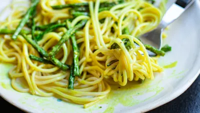 spaghetti green bean asparagus sauce cheese pasta second course vegetarian / Foto: A-lesa
