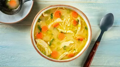 Piščančje fileje operemo in postavimo v večji lonec. Dodamo vodo, tako da prekrije meso, in jo počasi segrevamo, dokler ne zavre, nato pa zmanjšamo temperaturo in odstranimo peno, ki se je nabirala na površini. Zatem v lonec dodamo na večje kose narezane korenček, čebulo, zeleno in por, lovorov list, poper in nekaj vejic peteršilja ali timijana ter seveda solimo po okusu. Lonec pokrijemo s pokrovko in vsebino na nizkem ognju kuhamo približno 50 minut, dokler meso ni mehko in zelenjava kuhana. Juho precedimo, piščanca natrgamo na trakove, čebulo, por in zeleno zavržemo, korenje pa lahko uporabimo za bàgno caudo ali ga narežemo na koščke in ga tako kot natrgano meso vrnemo v juho, v kateri smo zakuhali rezance. Postrežemo jo okrašeno s ščepom peteršilja.