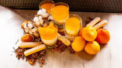Piškote s paličnim mešalnikom ali valjarjem zdrobimo v drobtine in jih zmešamo s stopljenim maslom. Mešanico razporedimo na dno kozarcev, približno žlica in pol na porcijo, in jih rahlo potlačimo, da nastane kompaktna podlaga. Mandarinam odstranimo kožico in bele nitke ter jih zmiksamo v pire, ki ga segrejemo. Dodamo v vodi zmešani škrob in kuhamo približno dve minuti, da se zmes zgosti v lahek sadni žele, ki ga pustimo, da se ohladi na sobno temperaturo. V drugi posodi zmešamo maskarpone, sladkor, limonin sok in vaniljo ter stepeno smetano, ki so jo pripravili vmes. Smetano nežno vmešamo v maskarpone, da nastane puhasta, svilnata krema. Na piškotno osnovo dodamo dve do tri žlice kreme, nanjo pa nežno vlijemo mandarinin žele, na vrh pa položimo še nekaj krhljev olupljenih mandarin. Pripravljeno sladico postavimo v hladilnik za vsaj pol ure, da se okusi povežejo in plasti lepo učvrstijo.