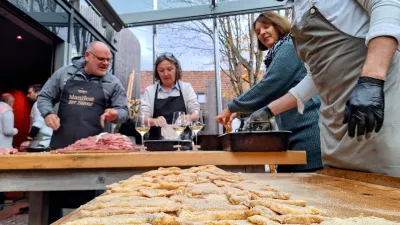 Ob sobotah v novembru Krisplovi na dvorišču svoje restavracije priredijo dogodek, ki se v prostem prevodu imenuje Izmera prašiča (Vermessung der Sau). Zanj zakoljejo certificirano ekološko vzrejenega prašiča, ga razkosajo, pri pripravi in predelavi mesa pa pomagajo tudi gostje, ki za udeležbo plačajo 125 evrov na osebo. Novinar Dnevnika se je lotil razreza maščobe za pripravo ocvirkov. »Bodite pozorni, da režete približno enako velike kocke,« je Krispel podučil skupino amaterskih mesarjev, medtem ko so ženske pri sosednji mizi sekljale česen in ribale hren.
