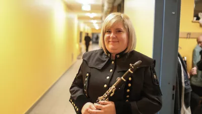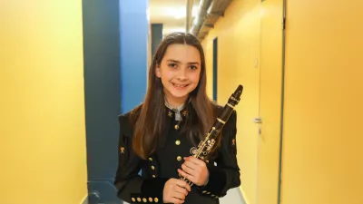 Olja Vencelj - Slavka je najmlajša članica idrijskih godbenikov. Treme pred nastopom ni imela pretirane. / Foto: Bojan Velikonja