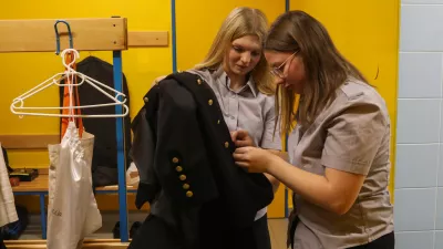 Tik pred zdajci je včasih treba še kaj zašiti. Pri 28 gumbih, kolikor jih imajo rudarske uniforme, hitro kakšen odleti. / Foto: Bojan Velikonja