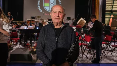Najstarejši član godbe Marjan Kogej klarinet igra od leta 1949 – torej celih 76 let. Na Javnem skladu RS za kulturne dejavnosti nimajo več značk za tako dolgo zvestobo. / Foto: Bojan Velikonja