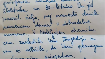 Roberta Lavrač iz Domžal je prispevala 20 evrov za poplavljeno družino Breznik-Krajnc iz okolice Luč, največ namenske pomoči pa je tudi tokrat prejela mamica treh mladoletnih fantov Sabina Zabukovnik iz okolice Slovenske Bistrice, ki ji je julijsko neurje s točo tako poškodovalo hišo, da so jo morali zapustiti in se začasno preseliti v občinsko stanovanje. Tam bodo najverjetneje morali ostati približno leto dni, saj so stene in stropi v hiši razmočeni in se bodo pozimi sušili, spomladi pa naj bi začeli obnavljati notranjost hiše, ki jo počasi praznijo, kajti domala vse pohištvo je popolnoma uničeno.