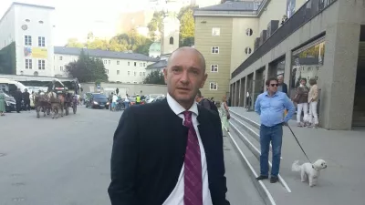 Primož Kompan pred salzburškimi festivalskimi dvoranami. / Foto: osebni arhiv
