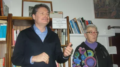 V stavbi Prosvetnega doma smo v baru Tabor, kjer je slovenščina povsem razumljiv jezik, spili odlično kavo, preden smo s predstavniki Slovenskega kulturnega društva Tabor poklepetali o njihovih dejavnostih ter dobili vpogled v izjemno ustanovo s spoštljivim redom in bogato slovensko zavestjo. Ko so govorili o tramvaju, ki ne vozi (zamenjali so zgolj kable, problem pa so tračnice, ki zdaj mirujejo že devet let in jih je treba s posebnimi vijaki priviti od spodaj navzgor), smo spoznali, da modri vozovi niso bili samo prevozno sredstvo, temveč kraj srečanj, trenutek spontanega združevanja, kjer so prisluhnili človeku in razumeli njegove težave, in tako od mladosti do zrelih let. Zanj sta bili napisani celo dve pesmi. So nam rekli, da tramvaja ne dajo. Je njihov! Slovenski!