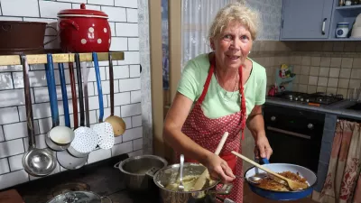 Majda Armič med pripravo krompirjevih žgancev na starem štedilniku / Foto: Nataša Bucik Ozebek